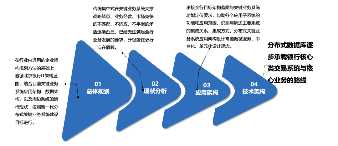随着北京银行的业务拓展,与互联网相关的业务发展有着新的特性,集中式数据库已无法完全满足当前的业务架构。其应用架构应遵循微服务、中台化、单元化的设计理念,之后将会由分布式数据库来逐渐承载银行核心业务与核心系统。从 2017 年开始,北京银行选择了 TiDB 数据库承载互联网业务并开始对分布式数据库进行改造。