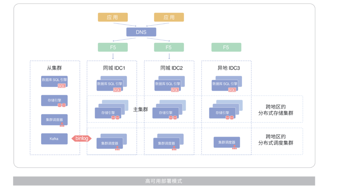 基于 TiDB 整合了原先 Oracle、MongoDB、Hive 多种异构产品,两地三中心部署架构满足行方最高等级系统的高可用和双活要求。