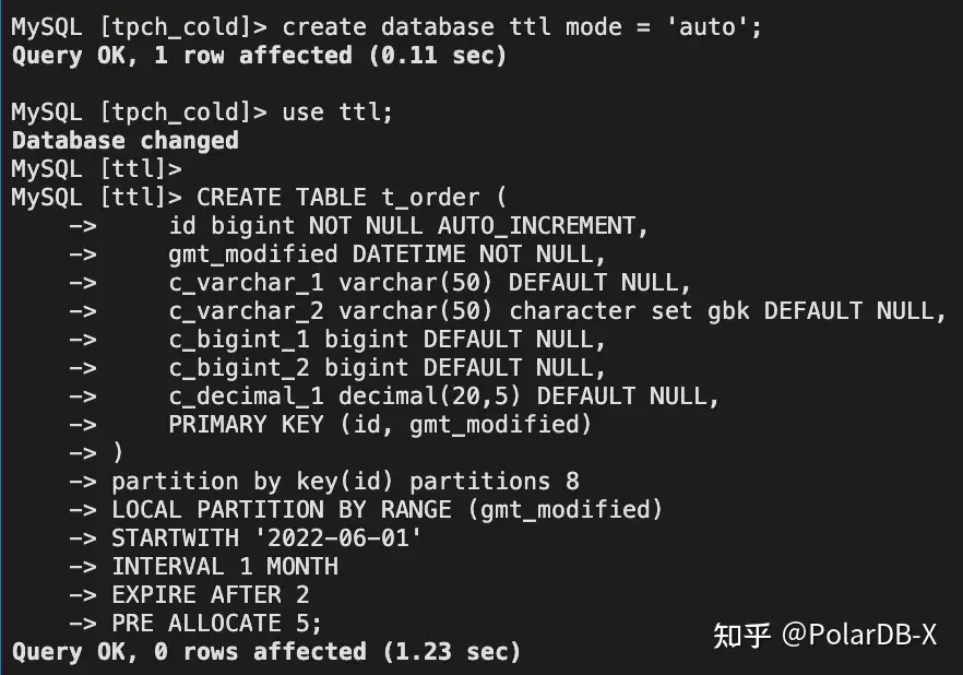 3. 导入完毕后,切换至终端,使用命令行连接PolarDB-X。执行如下命令,创建冷数据表并进行数据归档。
