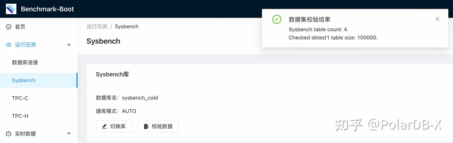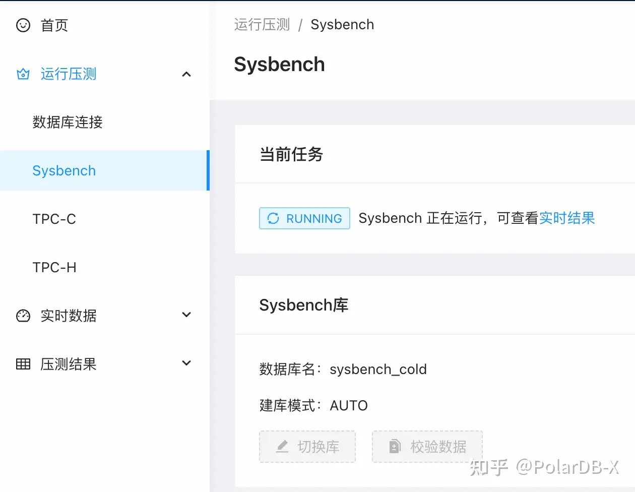 4. 回到运行压测-Sysbench面板中,单击切换库并将库切换为sysbench_cold。