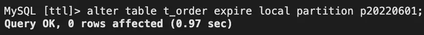 5. 执行如下命令,手动过期t_order的分区 p20220601。