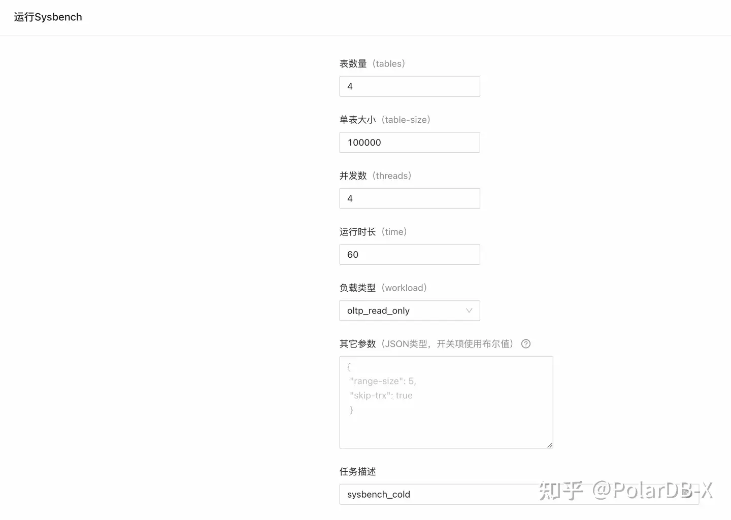 6.1 进入运行压测-Sysbench面板,在运行Sysbench表格中填入以下信息,然后单击提交。
