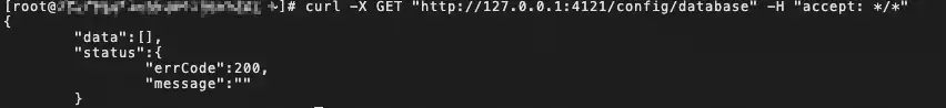curl -X GET "http://127.0.0.1:4121/config/database" -H "accept: */*"返回结果如下,表示Benchmark-Boot压测平台安装成功。