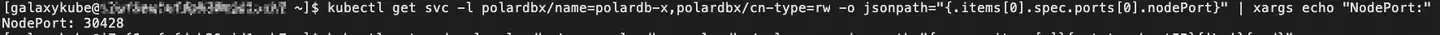 kubectl get svc -l polardbx/name=polardb-x,polardbx/cn-type=rw -o jsonpath="{.items[0].spec.ports[0].nodePort}" | xargs echo "NodePort:"返回结果如下,您可以查看到PolarDB-X集群端口