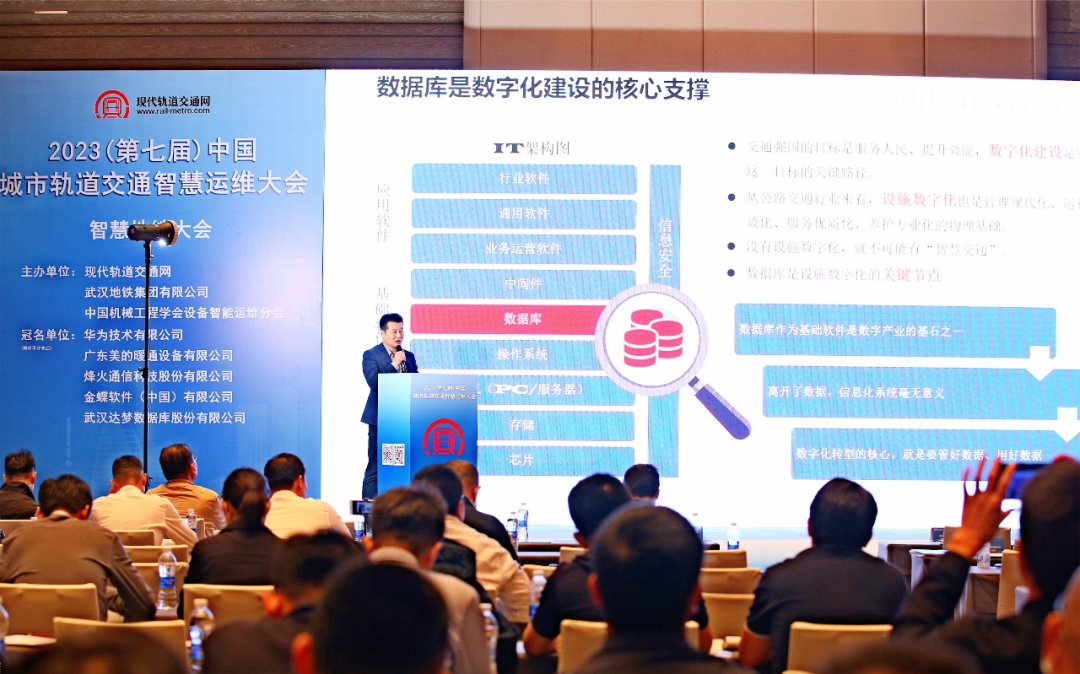 在2023(第七届)中国城市轨道交通智慧运维大会上,达梦数据作为大会冠名单位受邀参与演讲和展台展示。达梦数据技术服务中心副总经理胡俊在智慧地铁大会分论坛上发表《信创时代轨道交通行业国产数据库应用实践》的主题演讲,与现场500余位嘉宾代表共同聚焦“城市轨道交通智慧运维”,分享达梦数据在轨道交通行业的实践应用案例。