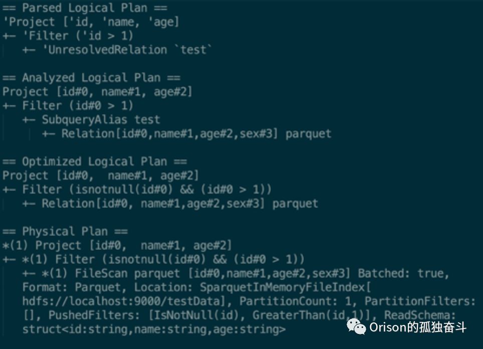 将Analyzed Logical Plan调用catalyst内置的优化策略,生成优化后的LogicalPlan。