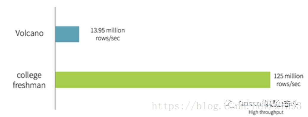 可以看到完全不需要next()方法。网上有一张很著名的图,是一张关于火山模型和大学新生手写代码的性能对比: