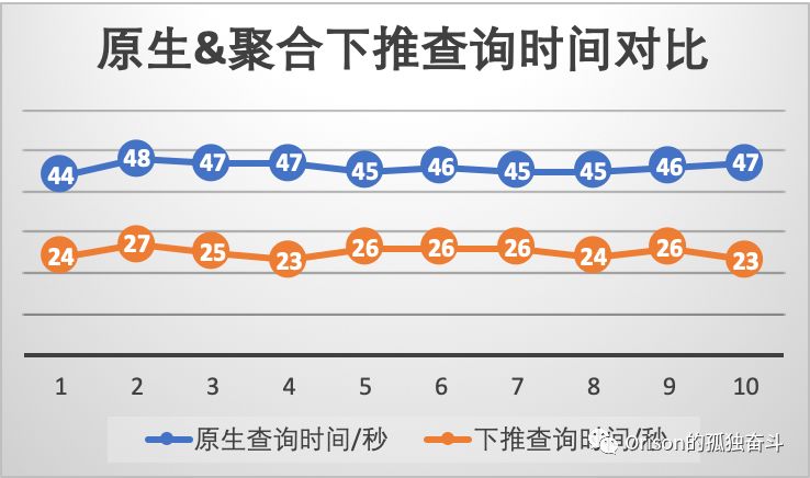由于下推到的数据源本身并没有实现聚合功能,所以相当于推到Spark的driver端后我们自己写代码计算了一遍聚合,如果在数据源本身就有聚合结果的话,查询时间是完全可以在10秒以内的。