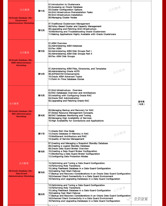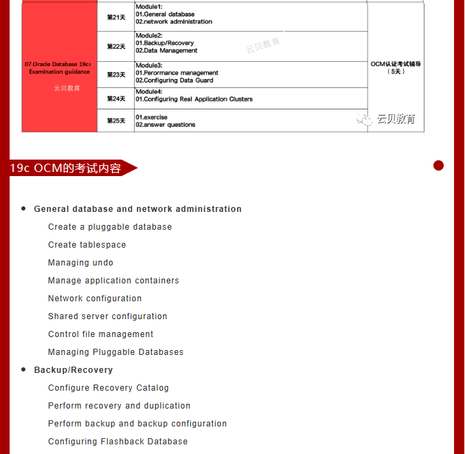 云贝教育新课推出【Oracle 19c OCM】 认证大师培训,共25天/150课时,联系VX:19941464235