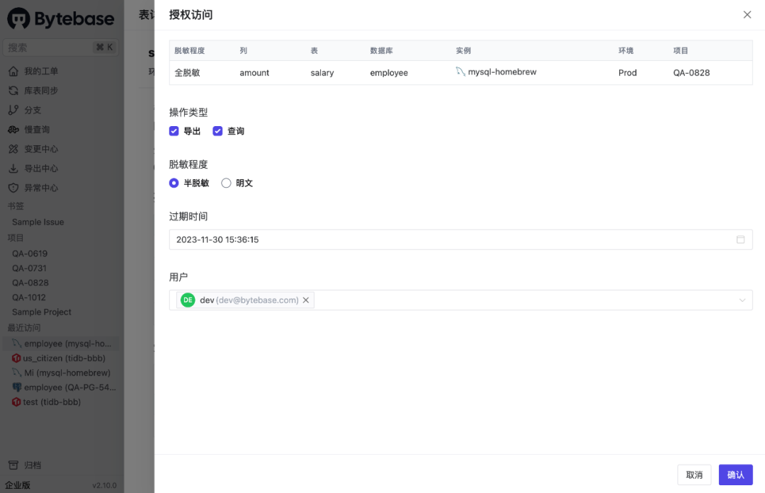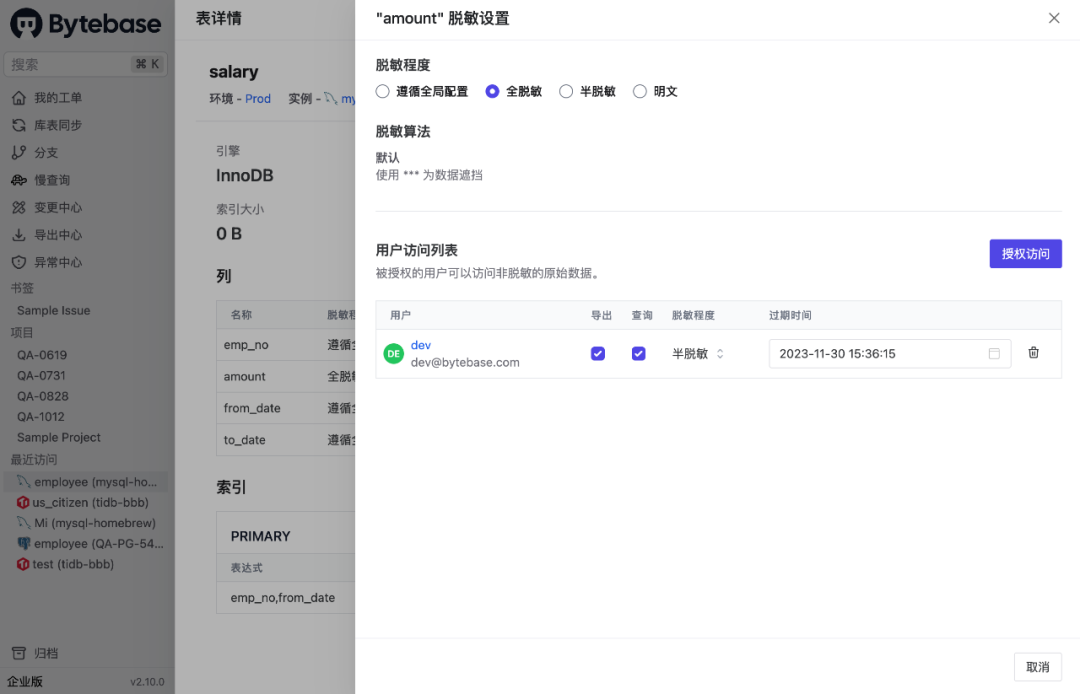 没有专门的模块来管理脱敏(毕竟只是普通的 MySQL VIEW)。