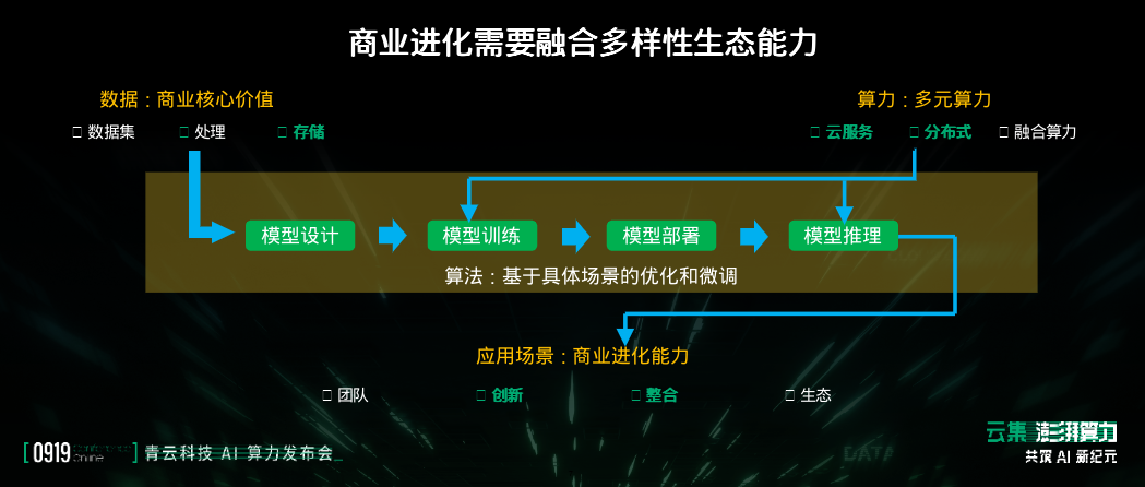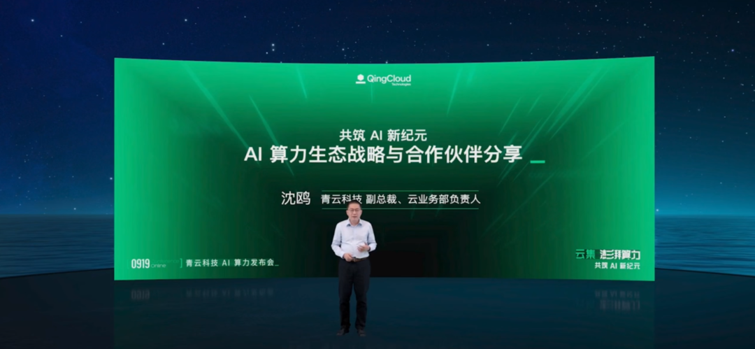 青云科技 AI 算力发布会上,青云科技副总裁、云业务部负责人沈鸥以《共筑 AI 新纪元 —— 青云 AI 算力生态战略与合作伙伴》为主题发表演讲。