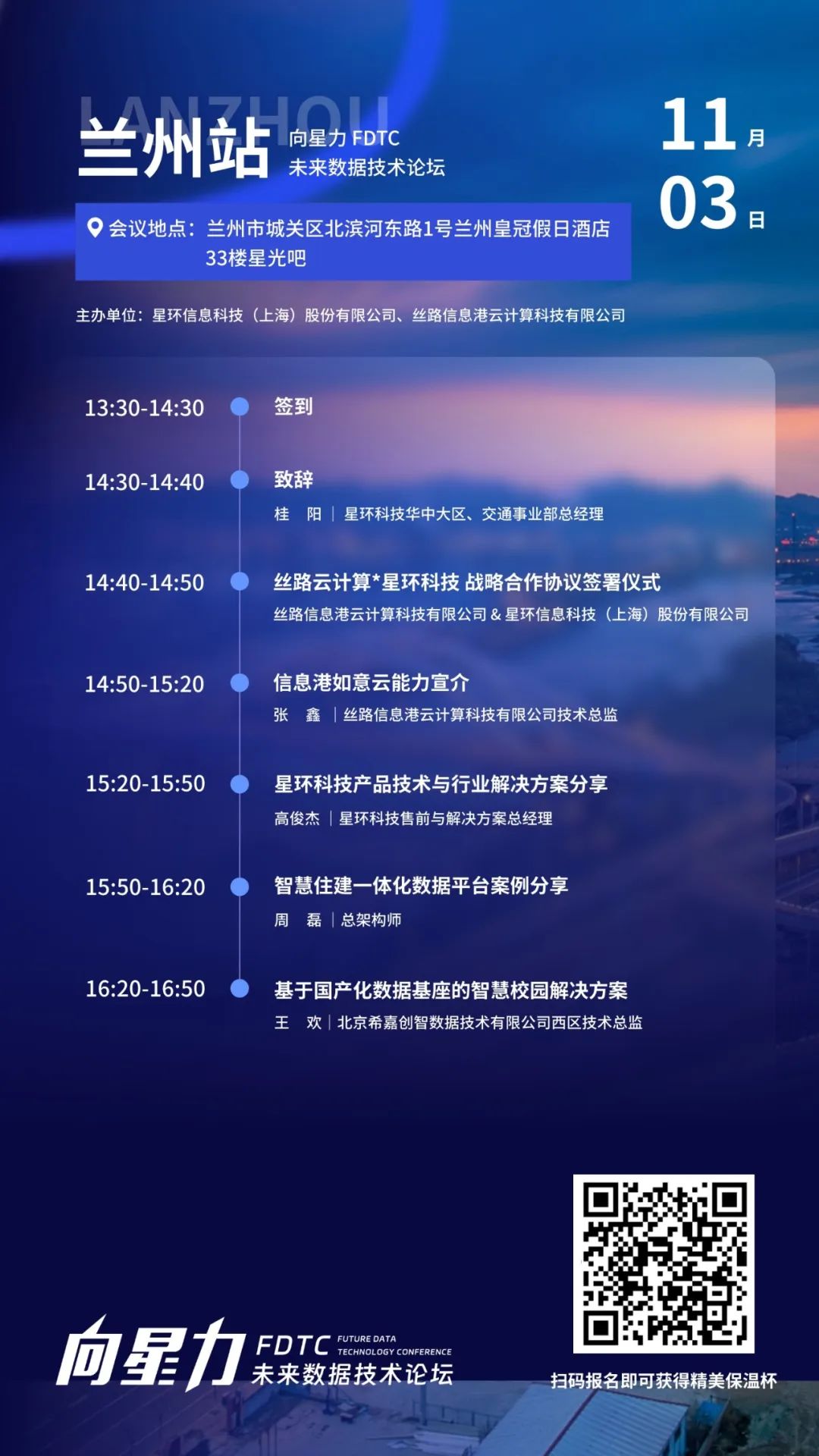 兰州站活动由星环科技、丝路信息港云计算科技有限公司共同主办,各领域大咖将齐聚陇原大地,分享前沿技术与实践成果。同时活动现场还将举行星环科技与丝路信息港云计算科技有限公司战略合作协议签署仪式。