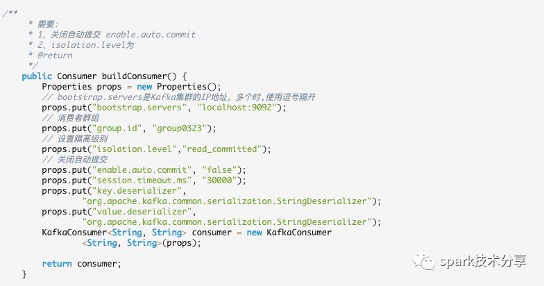 消费者需要配置Isolation.level。在consume-trnasform-produce模式下使用事务时,必须设置为READ_COMMITTED。