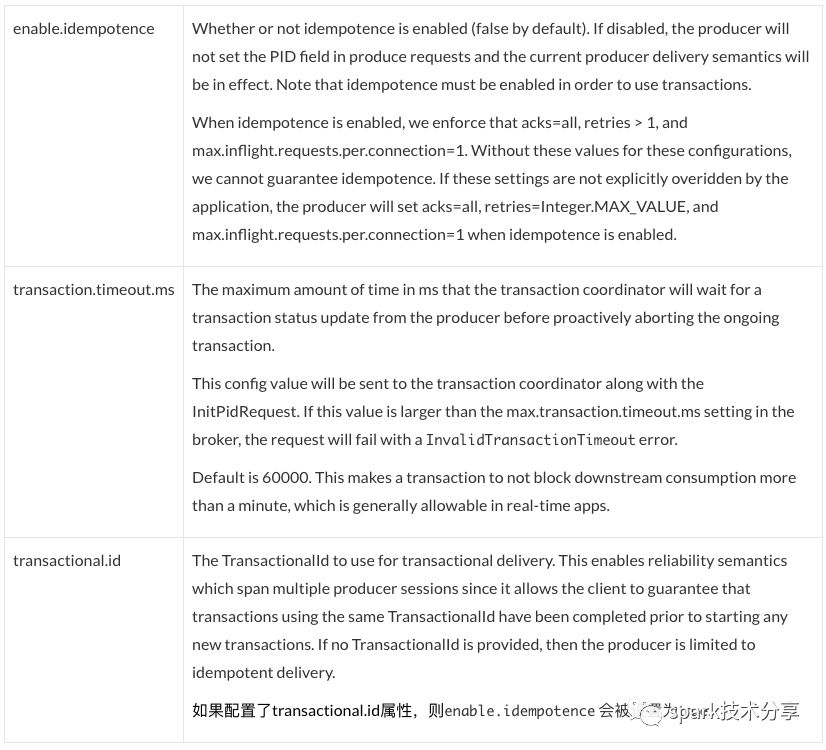enable.idempotence = true,transactional.id设置:支持事务属性和幂等性