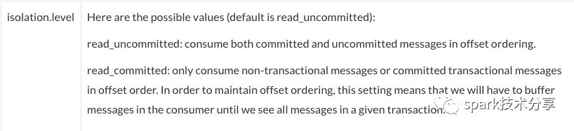 Consumer为了实现事务,新增了一个isolation.level配置,有两个值如下,