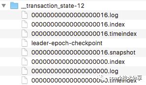 Transaction Log如下放置在“_tranaction_state”主题下面,默认是50个分区,每一个分区中文件格式和broker存储消息是一样的,都有log/index/timeindex文件,如下: