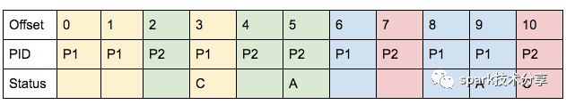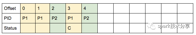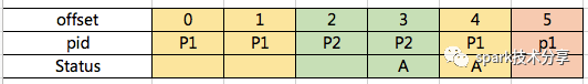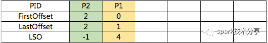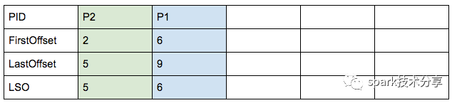 然后,broker依次读取abort index的内容,发现LSO大于等于 4 就停止。如上可以获取到P2对应的offset从2到5的消息都是被丢弃的: