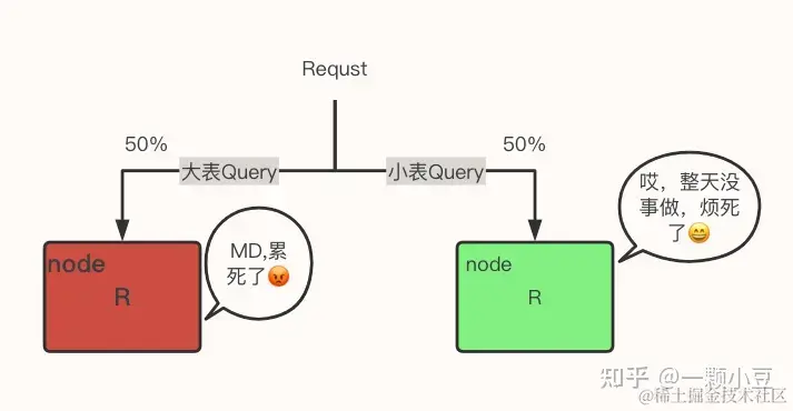 显然不太合适,比如赶巧大表的查询都落到A、小表查询都落到了B,那么A节点资源消耗远大于B,好比工作中忙的忙死、闲的闲死,负载均衡也失去了意义,针对这种场景该如何处理呢?