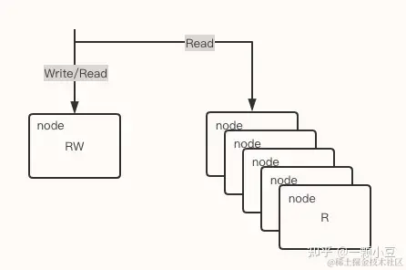 主节点能处理读写请求,主要负责写请求,从节点只能处理读请求,当然主从数据之间的同步由数据库自身保证,传统数据库、云原生数据库等都有自己的玩法。