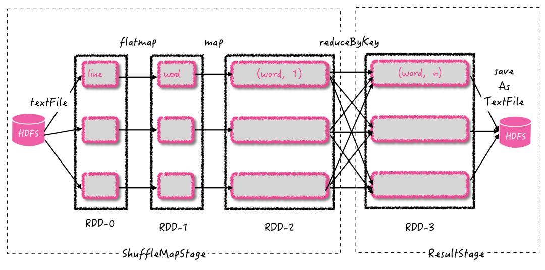 许多项目针对它的局限性进行了改进(如 Tez 等),接着看图 3 中 Spark 的具体操作流程: