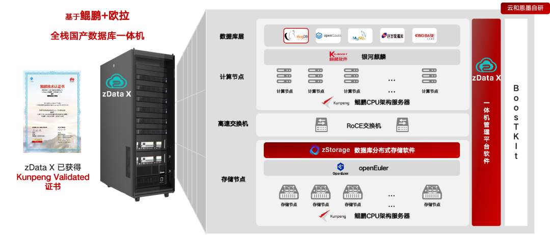 zData X 作为国产数据库一体机,立足于鲲鹏生态,全面适配鲲鹏软硬件,同时支持 MogDB、openGauss、MySQL、达梦、人大金仓等多种国外商业、开源及国产数据库,满足信创改造要求,目前在政务、医疗、制造等行业均有出色表现。