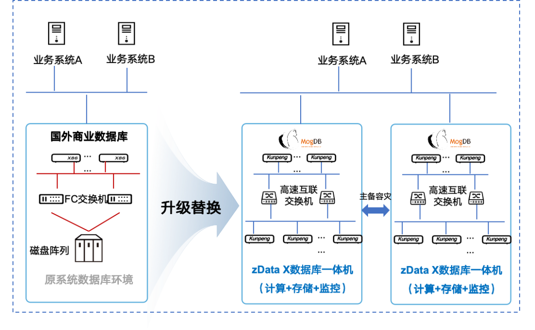 某省卫健委为响应全栈国产化信创改造要求、适应业务激增压力需求,决定采用 zDataX 替换原有老旧设备,同时将国外商业数据库升级替换为云和恩墨基于 openGauss 内核研发的企业级数据库 MogDB,并搭载基于鲲鹏架构的服务器作为计算、存储和监控节点,构建全栈国产数据库资源池。zData X 上线后,用户业务系统数据库访问效率明显提升,通过迁移前后的性能指标对比,带宽性能提升16倍以上,IOPS性能提升13倍以上。