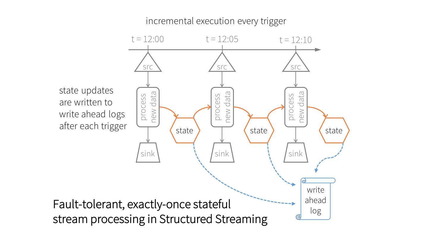 如果你想知道上述这么强大的功能是怎么实现的,我这里就掰扯掰扯,其实就是 Spark SQL 在内部维护了一个高容错的中间状态存储, 存储结构就是个 key-value 对, key 就对应分组, value 就对应每次增量统计后的一个聚合结果, 当然每次增量统计,就对应 key-value 的一个新的版本, 状态就从旧的状态到了新的状态, 所以才认为是有状态的。