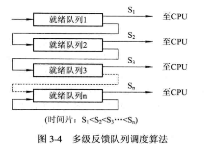 设置多个就绪队列。为每个队列赋予不同的优先级,第一个最高,后面逐个降低。算法为不同队列分配的执行时间片时间也不一样。 每个队列都采用FCFS算法。当新进程进入内存后,首先将它放入第一队列的末尾,到它执行时如果能在时间片内完成就将其撤离系统。如果一个时间片结束时尚未完成,就将其转入第二队列的末尾等待调度;然后重复这一操作,当降到n队列之后,便采取RR方式运行。 按队列优先级调度。调度程序首先调度最高优先级队列中的诸进程运行,仅当前一个队列空时,才调度后面队列的进程运行。