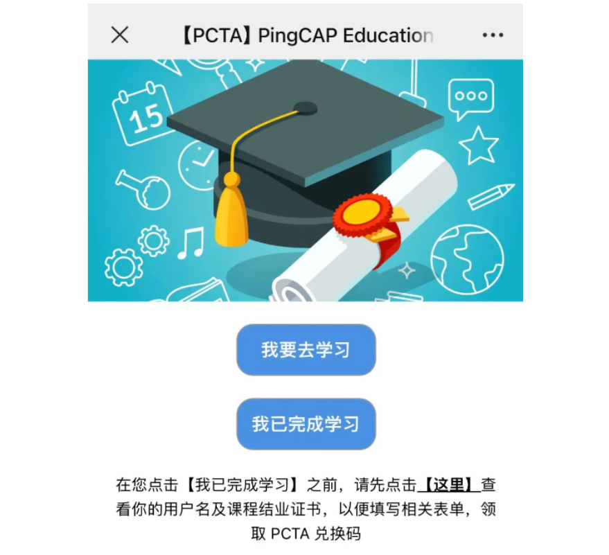 第三步:完成相关课程学习后,点击【我已完成学习】,提交你的学习成果(任意一门 PCSD 相关课程结业证书)