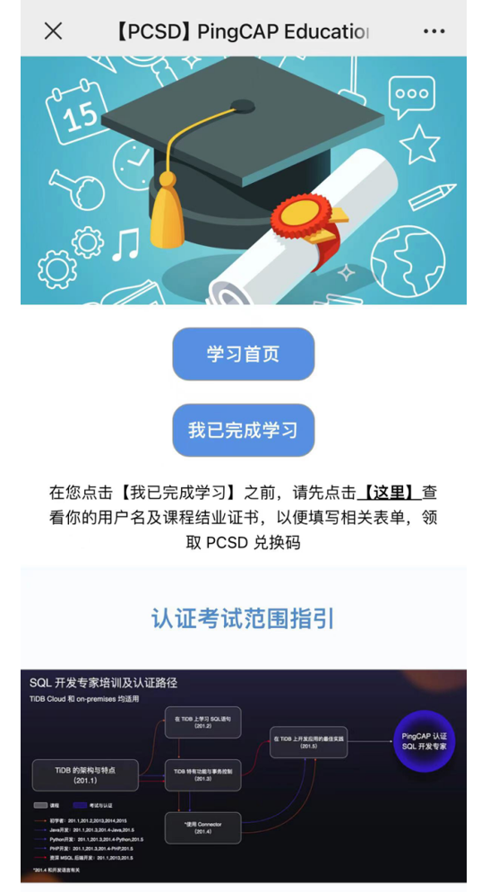 第四步:我们将在学习成果提交后的两个工作日内,通过 TiDB Club 服务号消息向您发送 PCSD 认证考试兑换码