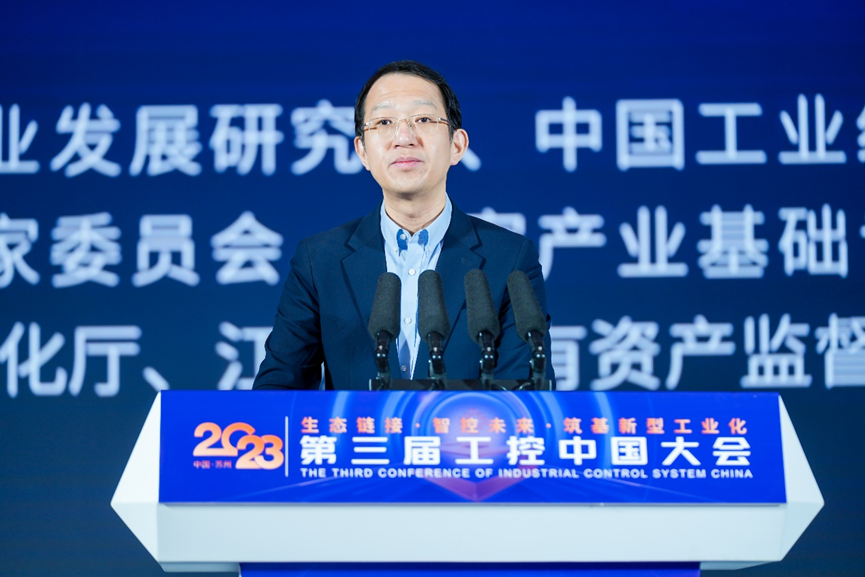 本届大会以“生态链接 智控未来 筑基新型工业化”为主题,由中国电子信息产业发展研究院、中国工业经济联合会、国家智能制造专家委员会、国家产业基础专家委员会、江苏省工业和信息化厅、江苏省国有资产监督管理委员会、苏州市人民政府共同主办。中国工程院院士柴天佑,中国工业经济联合会党委书记、执行副会长兼秘书长、国家制造强国建设委员会委员熊梦,江苏省工业和信息化厅副厅长池宇、苏州市人民政府副市长张桥等领导出席。大会由中国电子信息产业发展研究院总工程师高炽扬主持。中国电子信息产业发展研究院总工程师高炽扬