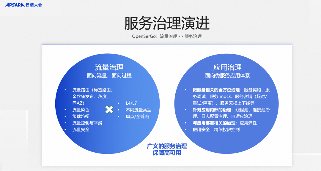 Istio 体系主要解决流量治理问题,抽象度高但是复杂,然而对于微服务,我们更多需要的是服务治理,因此我们会通过 OpenSerGo 来推动服务治理的规范和标准制定,简化服务治理使用门槛。