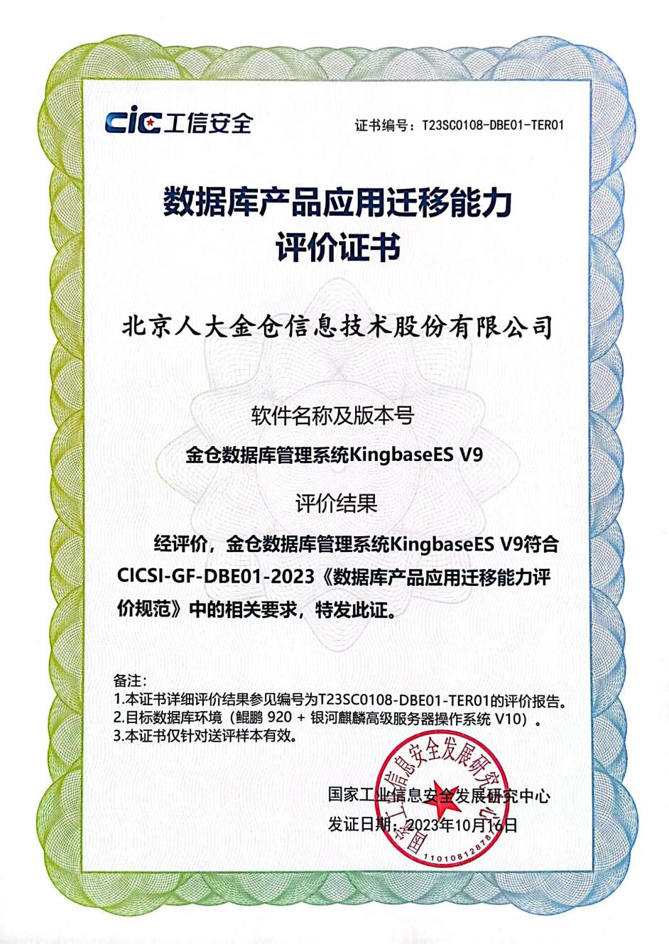 近日,在工信部国家工业信息安全发展研究中心组织的数据库产品应用迁移能力评价中,凭借在迁移能力评估、迁移实施能力、迁移工具能力和迁移兼容能力4个能力域上的突出表现,人大金仓首家通过。