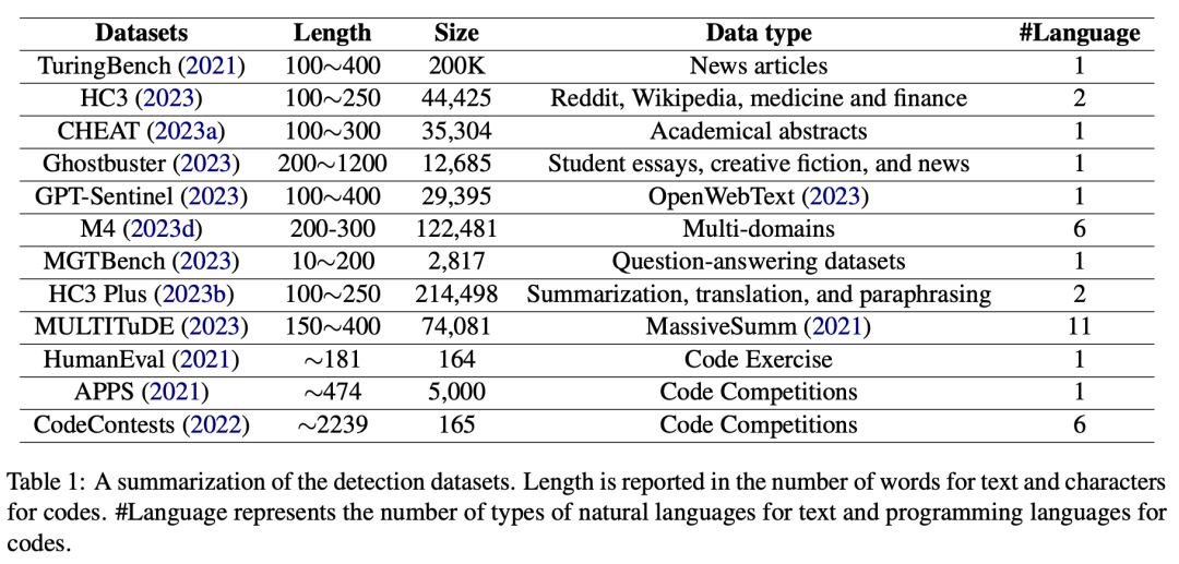 例如,OpenAI收集了来自不同模型系列的生成文本,并训练了一个强大的检测器,用于检测长度超过1,000个标记的文本。GPTZero也收集了人类编写的文本,包括学生写的文章、新闻文章和跨多个领域的问答数据集,这些文本来自各种不同的预训练语言模型。