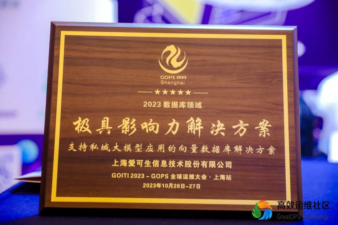 最后,本次大会颁布了2023年度IT技术领导力奖项,爱可生凭借支持私域大模型应用的向量数据库解决方案荣获了「极具影响力解决方案」称号。该解决方案以其灵活的索引结构,在毫秒级延时内能够返回千亿级数据中的相似匹配结果。