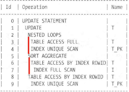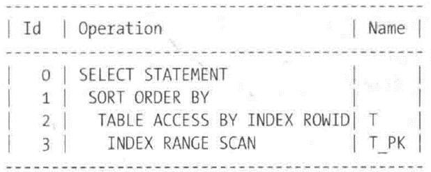 (4)操作3是一个索引扫描,不需要来自其他操作的数据(它没有子操作)。因此,它在t_pk索引上执行索引范围扫描并将它找到的rowid传递给父操作(2)。