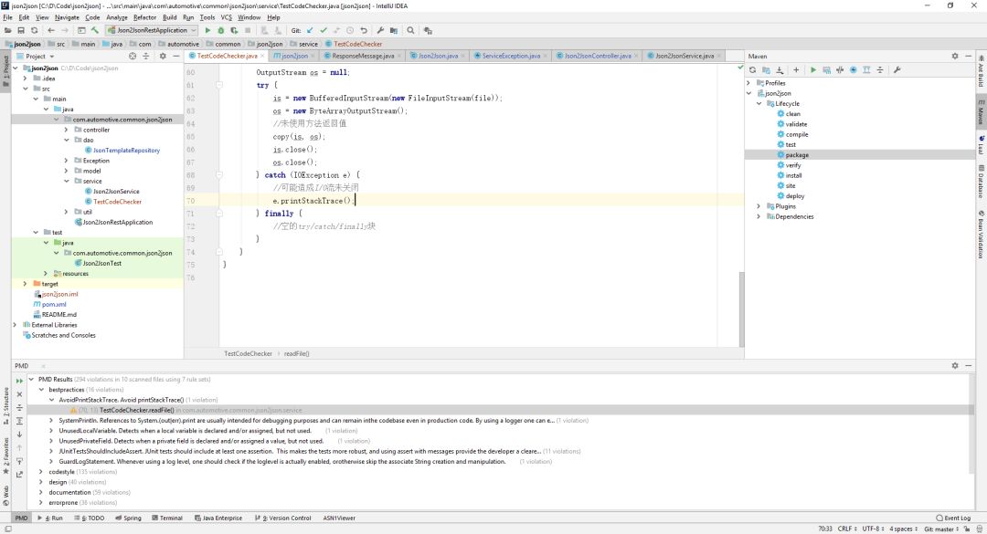 PMD 除了提供支持各种和 IDE 如 Eclipse、IDEA 集成的插件,它 通过其内置的编码规则对 Java 代码进行静态检查,主要包括对潜在的 bug,未使用的代码,重复的代码,循环体创建新对象等问题的检验。