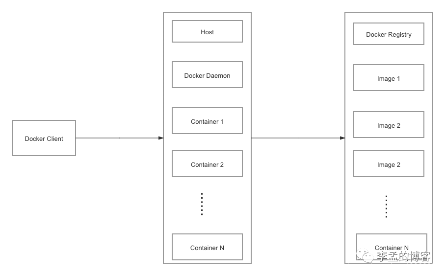Docker Client 客户端 Docker daemon 守护进程 Docker Image 镜像 Docker Container 容器 Docker Registry 仓库