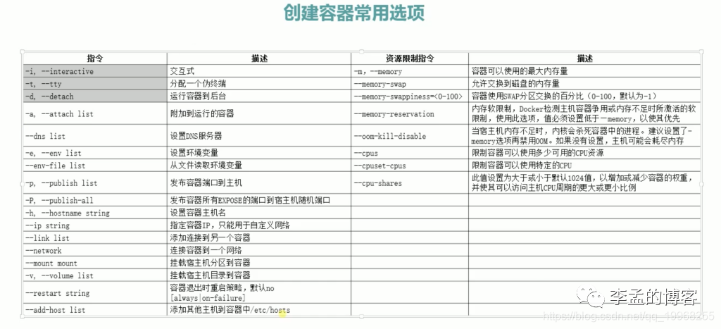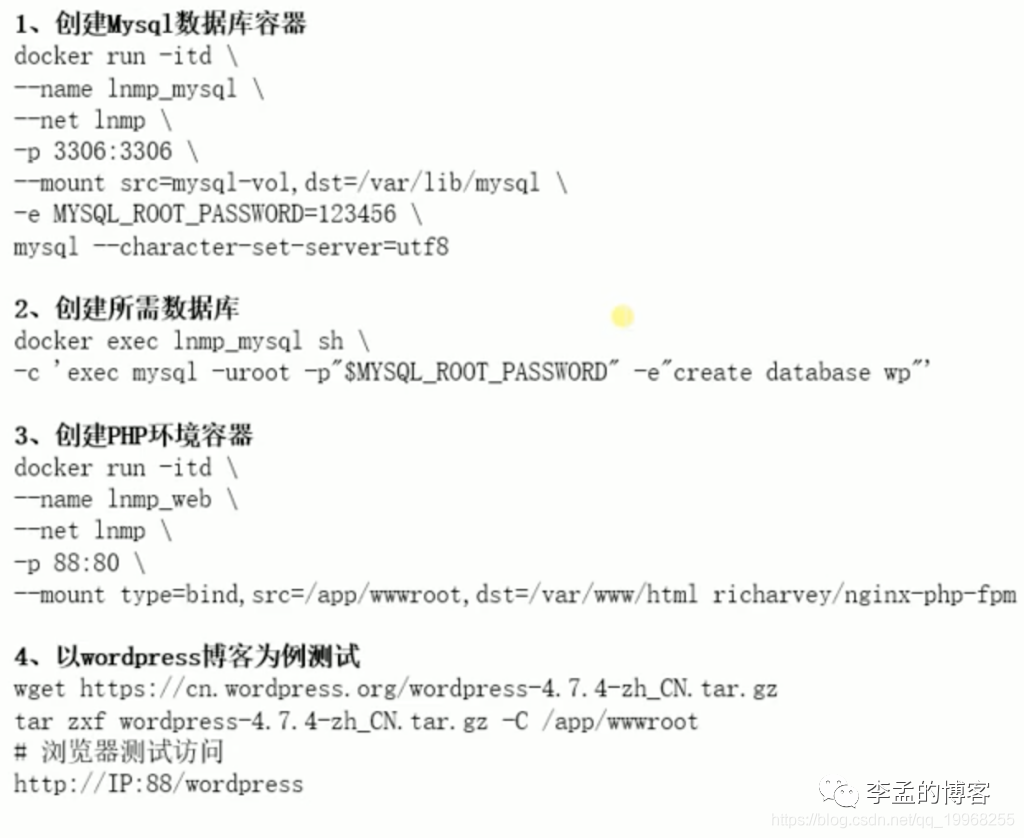 volumes:docker管理宿主机文件系统的一部分(/var/lib/docker/volumes)保存数据的最佳方式 bind mounts 将宿主机上的任意位置的文件或者目录挂在到容器 (--mount type=bind,src=源目录,dst=目标目录) tmpfs:挂载存储在主机系统的内存中,而不会写入主机的文件系统。如果不希望将数据持久存储在任何位置,可以使用 tmpfs,同时避免写入容器可写层提高性能。