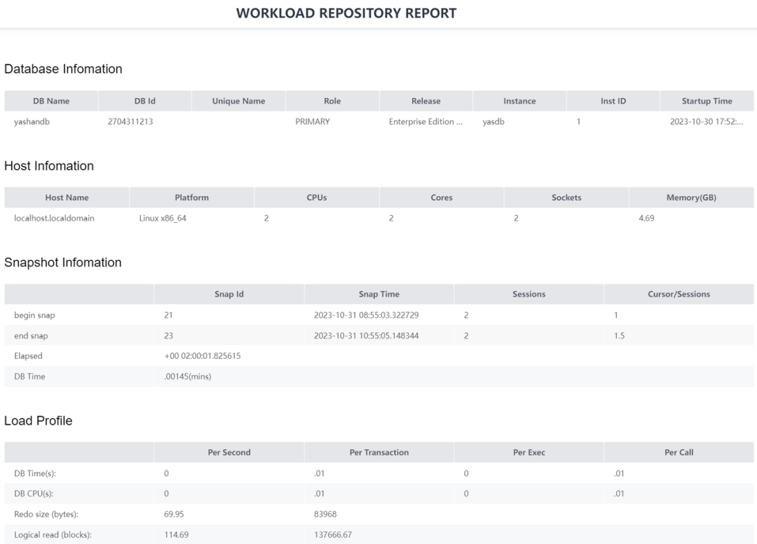 在高可用方面,YashanDB支持多种高可用架构,包括主备模式(类似Oracle DataGuard)、共享模式(类似Oracle RAC)、分布式模式。其中主备模式支持一主多备和级联备模式(不限层级),当主机发生故障的时候,业务可以转移到备机上继续执行,降低故障对业务的影响,提高数据库的可用性。共享模式则是在共享存储与共享内存技术实现一个单库多实例的多活数据库系统。支持在线故障自动切换和故障自动恢复,集群任一实例异常都不影响正常实例对外提供的服务。分布式则是采用Shared-Nothing 架构,由管理节点组、协调节点组与数据节点组组成。这些节点部署在不同主机上,有不同的安装目录、数据目录,并且通过一些网络端口进行内部通讯或对外提供服务。此外,针对对象级的误操作等,也提供了闪回功能。受限于测试环境,未做高可用测试。