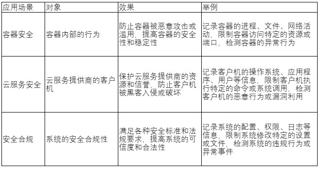 safeguard 是一种基于 KRSI(eBPF+LSM) 的 Linux 安全审计和管控解决方案,可以实现对系统的全面监控和保护。下面是一些可能的应用场景: