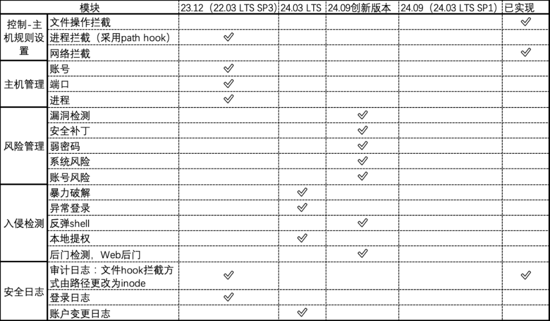 项目目前已经实现了审计控制及部分行为分析模块功能,整体规划如下: