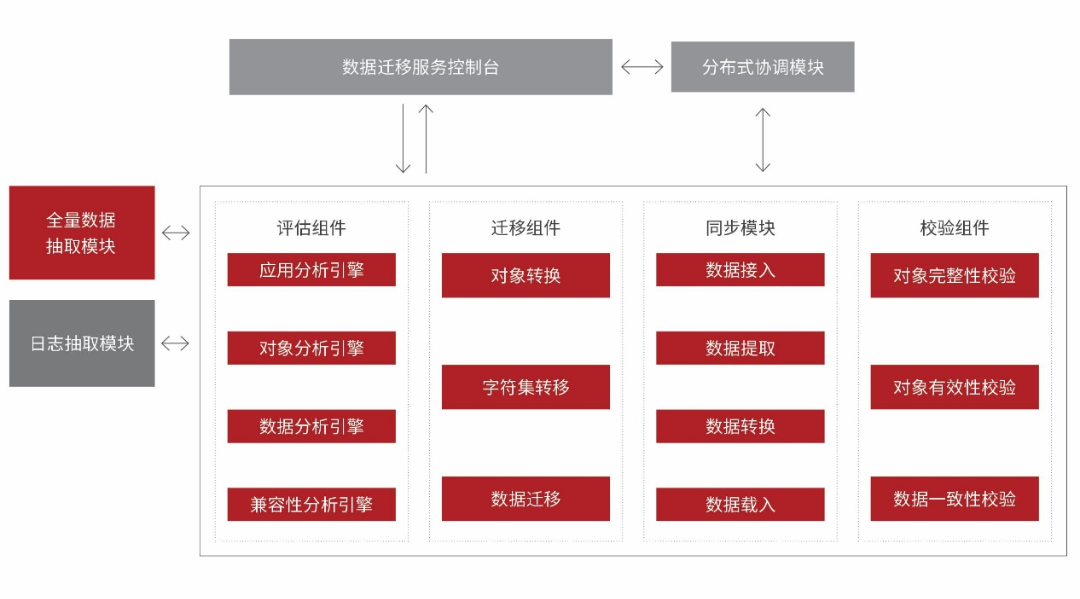 GreatDTS 数据迁移服务控制台提供WEB管理界面,可以向导化定义任务,通过协调模块发起批量并行任务,由后端执行组件执行相应任务,任务进度和结果展现在控制台界面上,用户可以查看或导出报告。