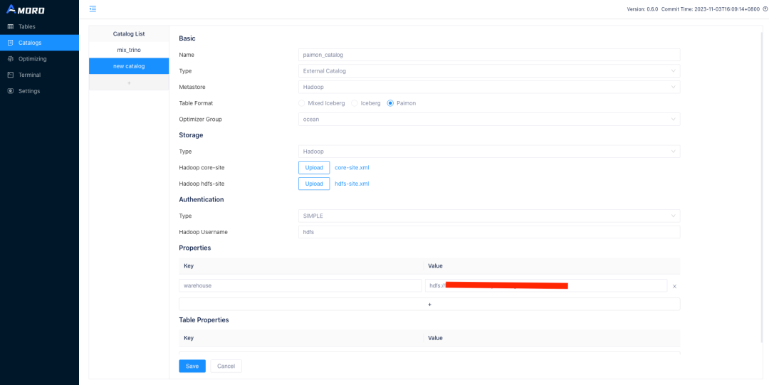 在 Catalogs 页面支持支持注册 Paimon catalog。