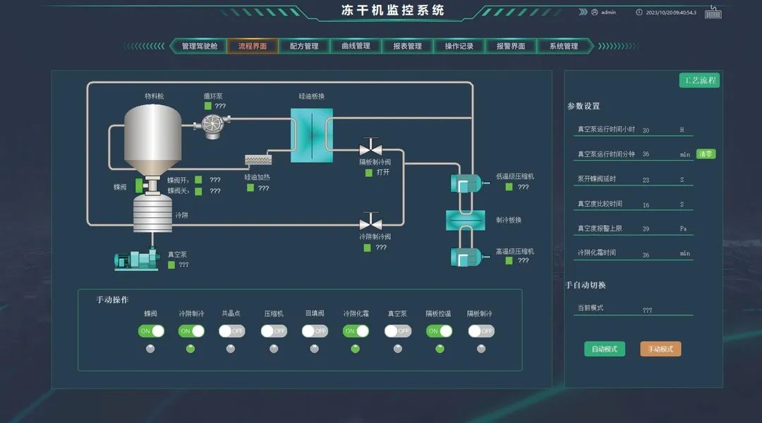 力控医药版组态软件与冻干设备配套的监控系统,实现了物料冷冻、干燥、脱水全流程可视化。系统实现的主要功能有:工艺控制、用户管理、审计追踪、电子签名、配方管理、批次管理等功能,产品符合制药行业规范要求。