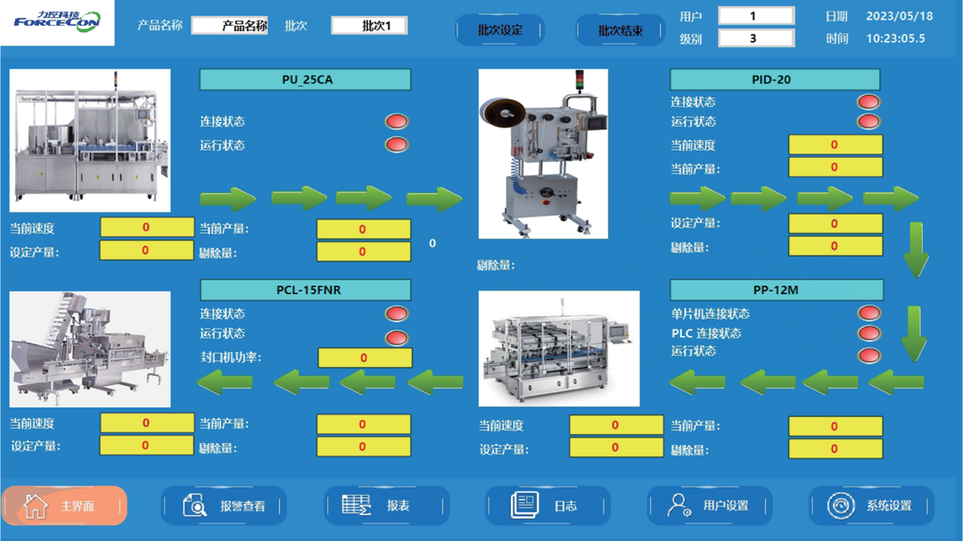 力控医药版组态软件与固体制剂瓶装包装线配套,产线包含高速理瓶机、干燥剂投入机、数粒机、旋盖机等设备。客户致力于智能包装和标识设备的研发、制造、销售及整体配套服务。