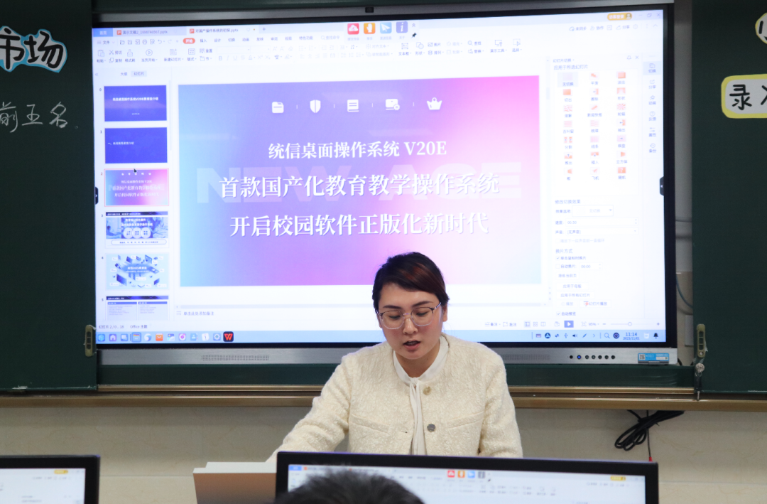公开课基于统信UOS教育版、统信网络同传还原系统、统信多媒体互动教学系统的教学环境,其完美适配了教学过程中的各种应用,顺利完成了初中阶段的课堂教学目标。