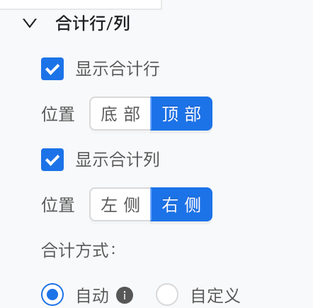 总计配置:支持列汇总和行汇总,行总计和行小计,列总计和列小计