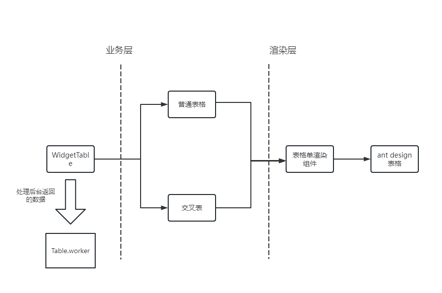这个阶段的交叉表,在功能上已经能够满足绝大多数分析场景,但是一些数据量大的表格反馈渲染白屏时间过长,经常会出现浏览器崩溃,表格的性能面临新的挑战。另外表格在渲染时,CPU会占满,导致其他图表也会卡住等待,形成假死的现象。我们通过分析大数据表格渲染流程,发现有30%的时间会花销在数据适配,因此我们思考能不能把数据计算部分隔离出来,计算的时候,不阻塞渲染主进程,这样的话,浏览器渲染就可以处理其他的渲染任务。在做性能优化调研时,我们引入了service worker,worker在处理cpu密集型任务有独特的优势,所以我们把数据预处理的过程交给了Worker。之前没有使用worker时,我们前端逻辑会处理很多数据初始化和计算的操作,对于一个数据量很大的表格,会导致渲染卡顿2~3s,有些个别情况会导致浏览器崩溃的现象。