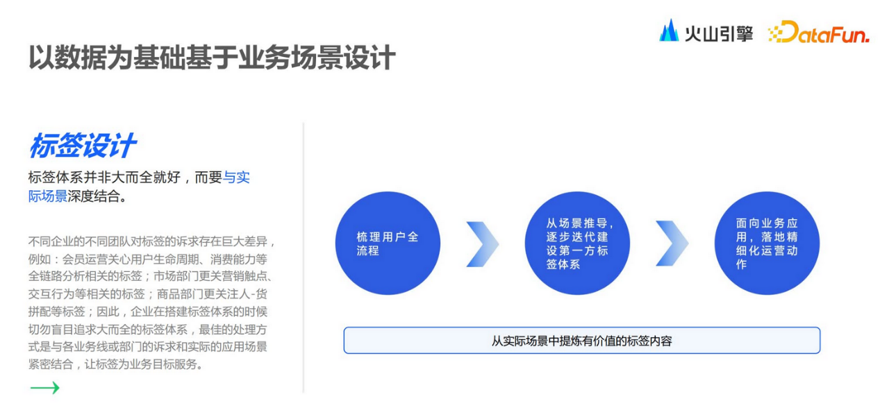 因此,企业需要从业务场景出发,构建适用于自身业务模式和逻辑的标签体系,为企业的精细化运营及精准营销服务,进而深入挖掘潜在的商业价值。